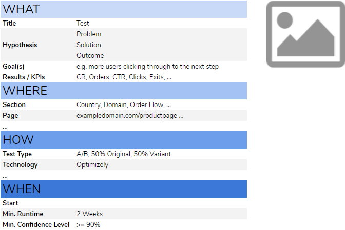 Such fact sheets are framing the context of the test process and it focuses people’s attention who are involved in creating and setting up the test. Even before the detailed design of the test concept, one should be aware of what one wants to test in concrete terms. The first step is to look at the test idea and the underlying hypothesis for a test.